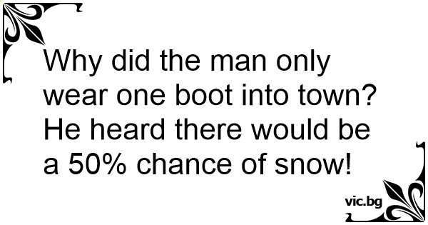 Why did the man only wear one boot into town? He heard there would be a 50% chance of snow!