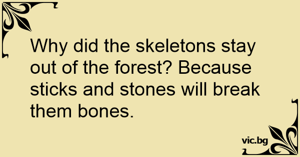 Why did the skeletons stay out of the forest? Because sticks and stones will break them bones.