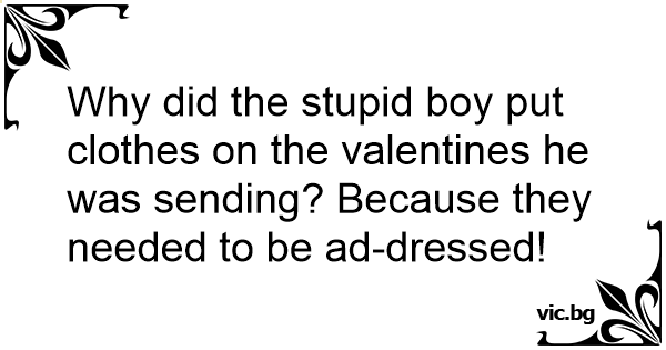 Why did the sтuрid boy put clothes on the valentines he was sending? Because they needed to be ad-dressed!