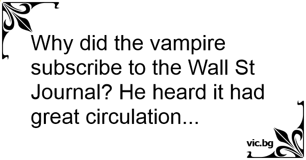 Why did the vampire subscribe to the Wall St Journal? He heard it had great circulation...
