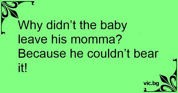 Why didn’t the baby leave his momma? Because he couldn’t bear it!