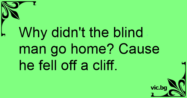 Why didn't the blind man go home? Cause he fell off a cliff.