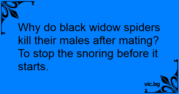 Por que as aranhas viúvas negras matam o macho depois da cópula? Para acabar com o ronco antes que ele comece ...