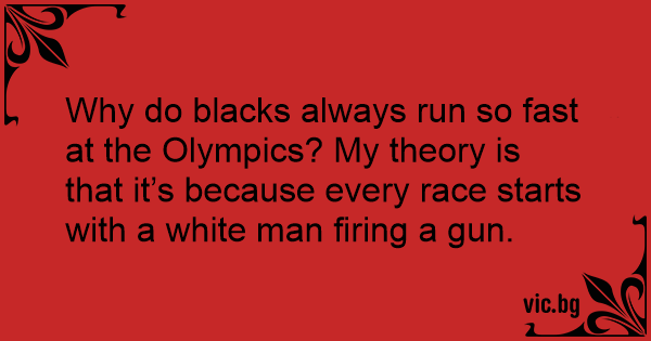Why do blacks always run so fast at the Olympics? My theory is that it’s because every race starts with a white man firing a gun.