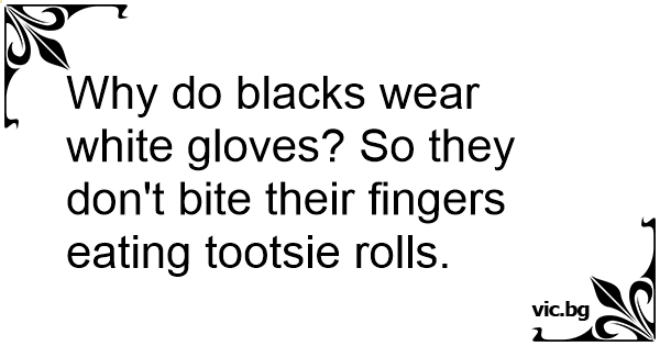 Why do blacks wear white gloves? So they don't bite their fingers eating tootsie rolls.