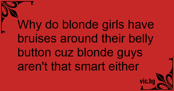 Why do blonde girls have bruises around their belly button cuz blonde guys aren't that smart either