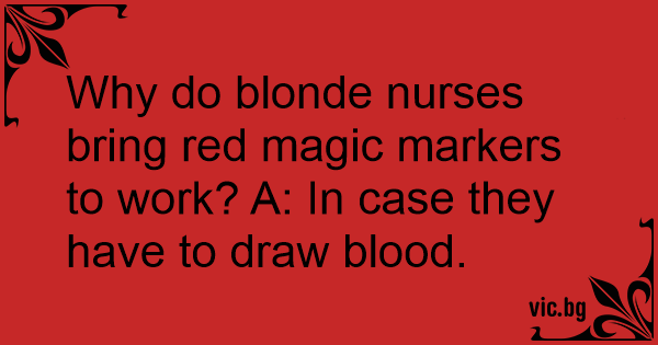 Why do blonde nurses bring red magic markers to work? A: In case they have to draw blood.