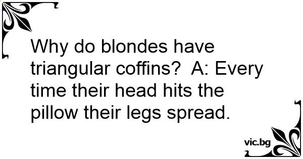 Why do blondes have triangular coffins? A: Every time their head hits the pillow their legs spread.