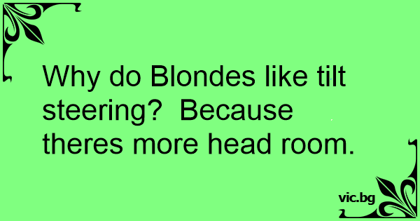 Why do Blondes like tilt steering? Because theres more head room. 32 0 0 Blonde Jokes One-Liner Jokes