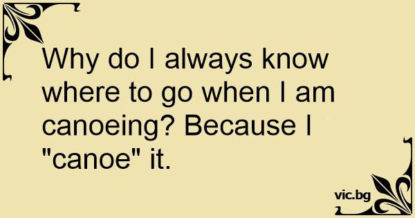 Why do I always know where to go when I am canoeing? Because I "canoe" it.