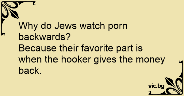 - Γιατί οι Εβραίοι βλέπουν τις ταινίες πορνό ανάποδα; - Για να φθάσουν στο σημείο όπου η πόρνη δίνει πίσω τα χρήματα