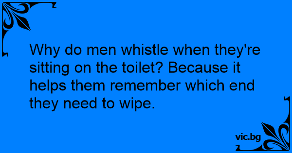 Why do men whistle when they're sitting on the toilet? Because it helps them remember which end they need to wipe.