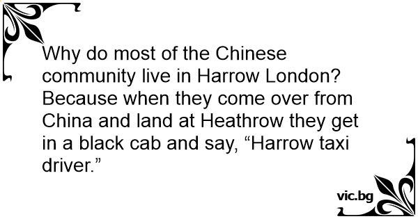 Because when they come over from China and land at Heathrow they get in a black cab and say, “Harrow taxi driver.”