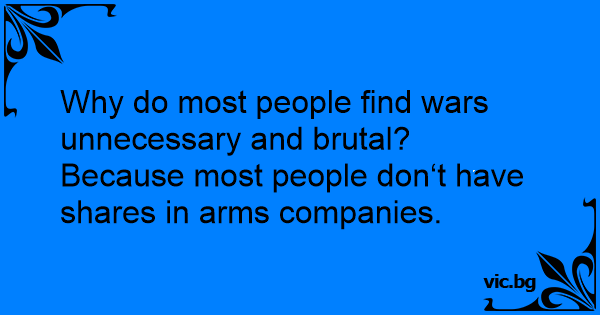 Why do most people find wars unnecessary and brutal? Because most people don‘t have shares in arms companies.