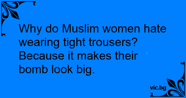 Why do Muslim women hate wearing tight trousers? Because it makes their bomb look big.