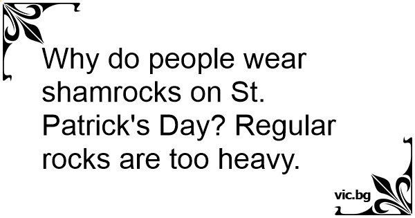 Why do people wear shamrocks on St. Patrick's Day? Regular rocks are too heavy.