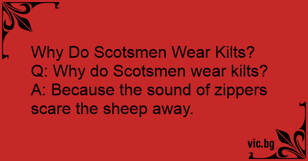 Waarom dragen Schotten een kilt? Omdat een schaap een rits al van een kilometer afstand hoort...