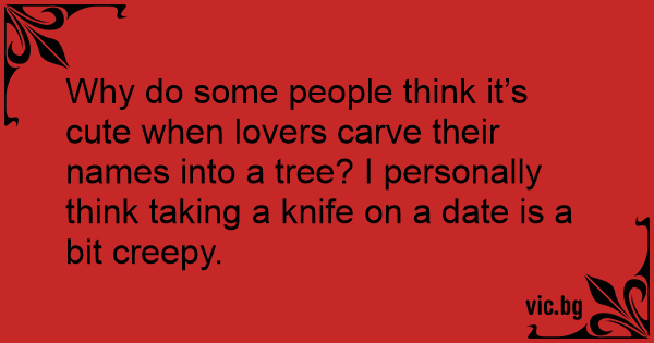 Why do some people think it’s cute when lovers carve their names into a tree? I personally think taking a knife on a date is a bit creepy.