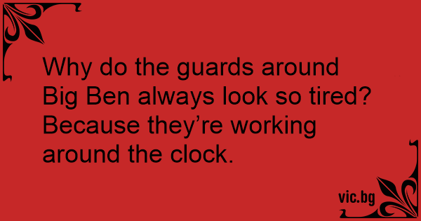 Why do the guards around Big Ben always look so tired?<br />Because they’re working around the clock.