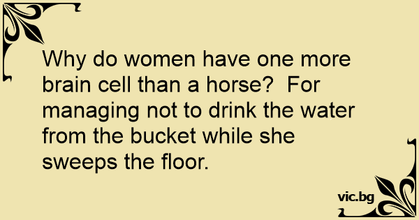 Why do women have one more brain cell than a horse? For managing not to drink the water from the bucket while she sweeps the floor.