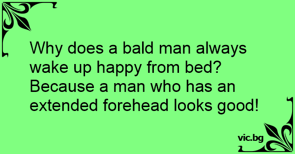 Why does a bald man always wake up happy from bed? Because a man who has an extended forehead looks good!