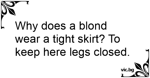 Why does a blond wear a tight skirt? To keep here legs closed.