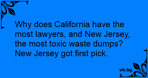 Why does California have the most lawyers, and New Jersey, the most toxic waste dumps?