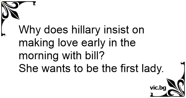 - Miksi Hillary Clinton herättää miehensä joka yö heti puolen yön jälkeen ja vaatii häneltä seksiä? - Hän haluaa olla päivän ensimmäinen nainen.