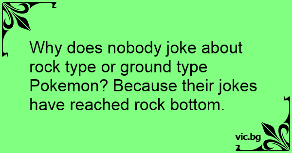 Why does nobody joke about rock type or ground type Pokemon? Because their jokes have reached rock bottom.