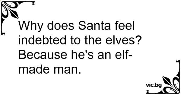 Why does Santa feel indebted to the elves? Because he's an elf-made man.