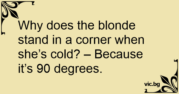 Why does the blonde stand in a corner when she’s cold? – Because it’s 90 degrees.