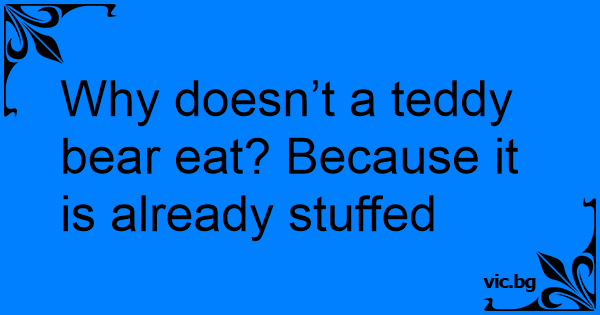 Why doesn’t a teddy bear eat? Because it is already stuffed