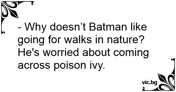 - Why doesn’t Batman like going for walks in nature? He's worried about coming across poison ivy.