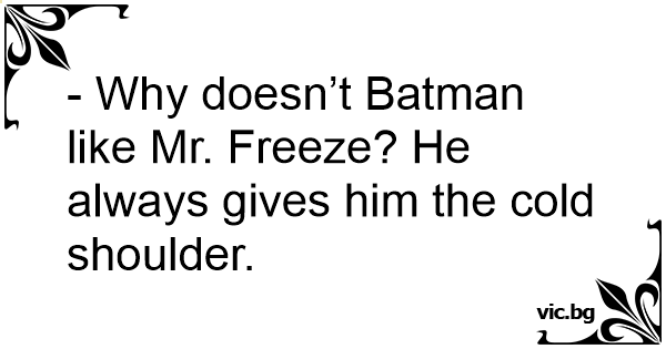 - Why doesn’t Batman like Mr. Freeze? He always gives him the cold shoulder.