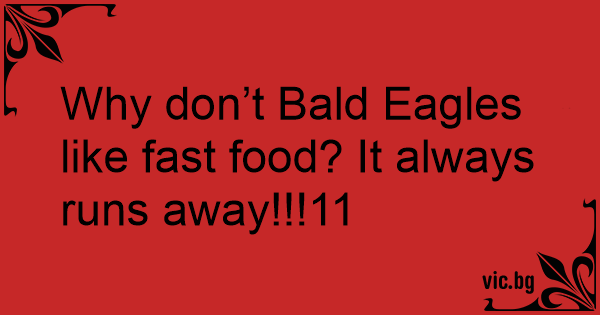Why don’t Bald Eagles like fast food? It always runs away!!!11