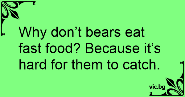 Why don’t bears eat fast food? Because it’s hard for them to catch.