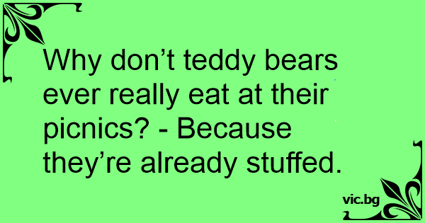 Why don’t teddy bears ever really eat at their picnics? - Because they’re already stuffed.