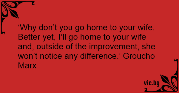 Better yet, I’ll go home to your wife and, outside of the improvement, she won’t notice any difference.’ Groucho Marx