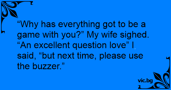“Why has everything got to be a game with you?” My wife sighed.