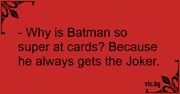 - Why is Batman so super at cards? Because he always gets the Joker.