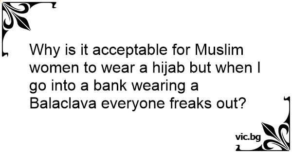 Why is it acceptable for Muslim women to wear a hijab but when I go into a bank wearing a Balaclava everyone freaks out?