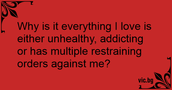 Why is it everything I love is either unhealthy, addicting or has multiple restraining orders against me?