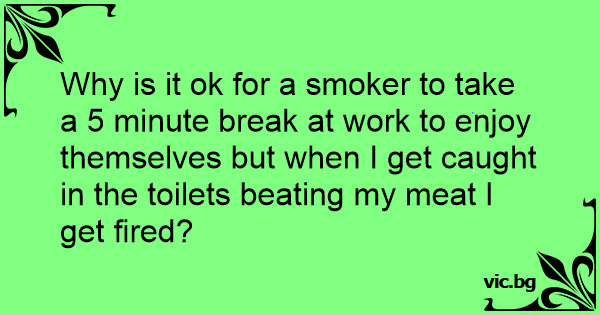 Why is it ok for a smoker to take a 5 minute break at work to enjoy themselves but when I get caught in the toilets beating my meat I get fired?
