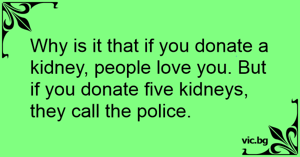 Why is it that if you donate a kidney, people love you. But if you donate five kidneys, they call the police.