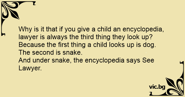Why is it that if you give a child an encyclopedia, lawyer is always the third thing they look up?