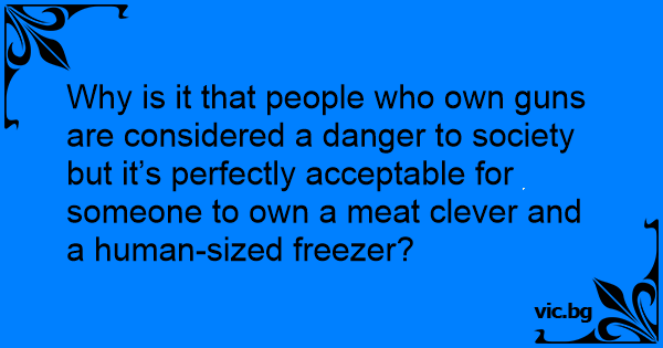 Why is it that people who own guns are considered a danger to society but it’s perfectly acceptable for someone to own a meat clever and a human-sized freezer?