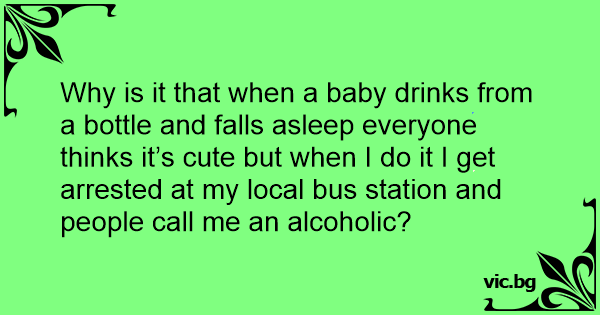 Why is it that when a baby drinks from a bottle and falls asleep everyone thinks it’s cute but when I do it I get arrested at my local bus station and people call me an alcoholic?