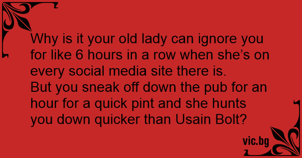 Why is it your old lady can ignore you for like 6 hours in a row when she’s on every social media site there is.