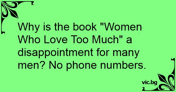 Why is the book "Women Who Love Too Much" a disappointment for many men? No phone numbers.
