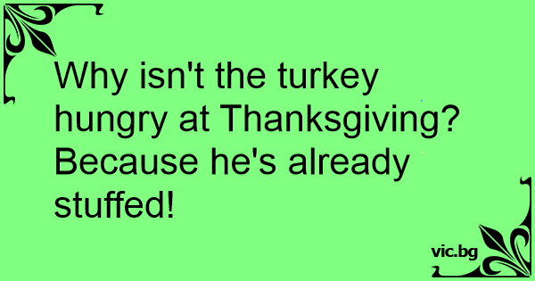 Why isn't the turkey hungry at Thanksgiving? Because he's already stuffed!
